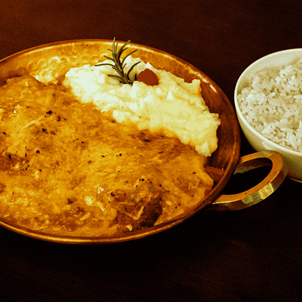 Filé mignon empanado com farinha de rosca, coberto com molho de tomate e queijos, servido com arroz branco e purê de batata -Serve duas pessoas